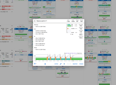 Analyse et retour sur chaque séance d'entrainement, contact illimité avec l'entraineur et réadaptation de l'entrainement en fonction des contraintes pro-perso